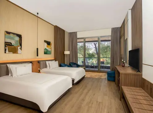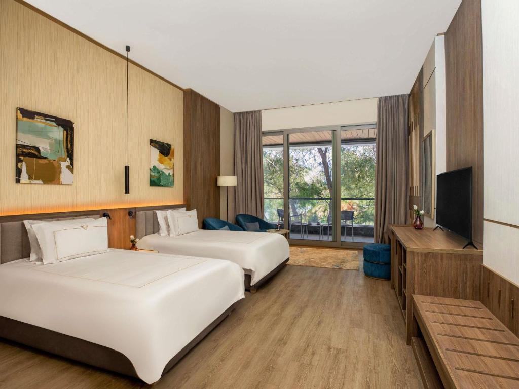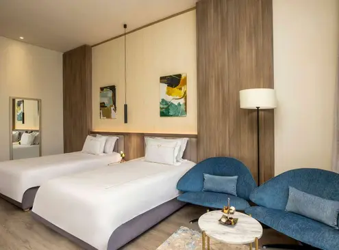The resort features luxurious rooms and suites with refined interiors, private balconies, and breathtaking views of the Mediterranean Sea or the Montaza Palace gardens. Each accommodation is equipped with premium amenities, delivering comfort and sophistication for both leisure and luxury travelers.